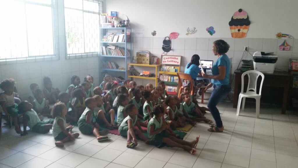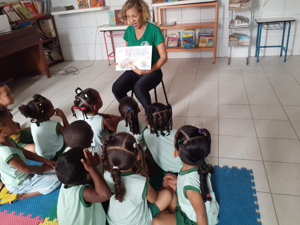 De succesvolle rijdende bibliotheek Livro em Roda (Boeken op Wielen) die zo’n 2500 kinderen bereikt in de staat Paraiba in het noordoosten van Brazilie, vindt nu ook navolging op onze drie kleuterscholen in Salvador.